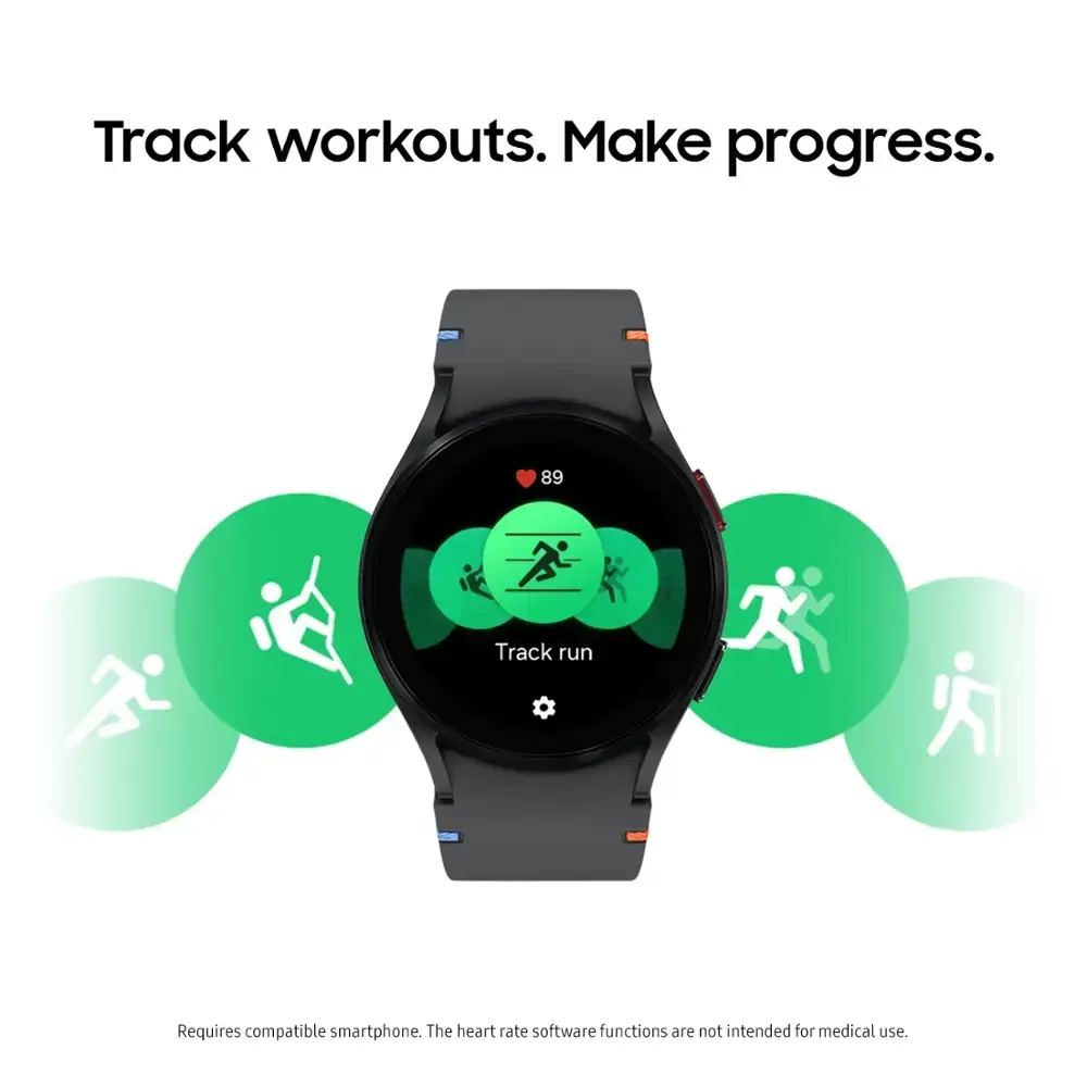 The Samsung Galaxy Watch FE Smartwatch features a sleek 40mm case in Black, delivering a minimalist, modern aesthetic. With Bluetooth connectivity, it seamlessly pairs with your smartphone for calls and notifications. Its advanced health monitoring system tracks heart rate, sleep, blood oxygen, and stress levels, keeping you informed about your well-being. Ideal for fitness enthusiasts, it offers various workout modes and built-in GPS for precise tracking. Built to withstand everyday challenges, it is water-resistant with a 5ATM rating. Enjoy long battery life, ensuring all-day usage on a single charge