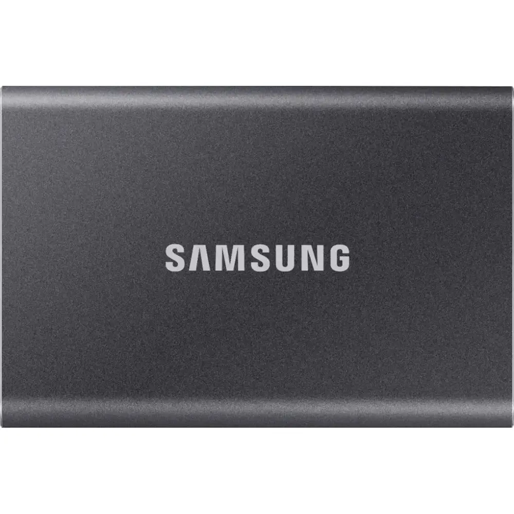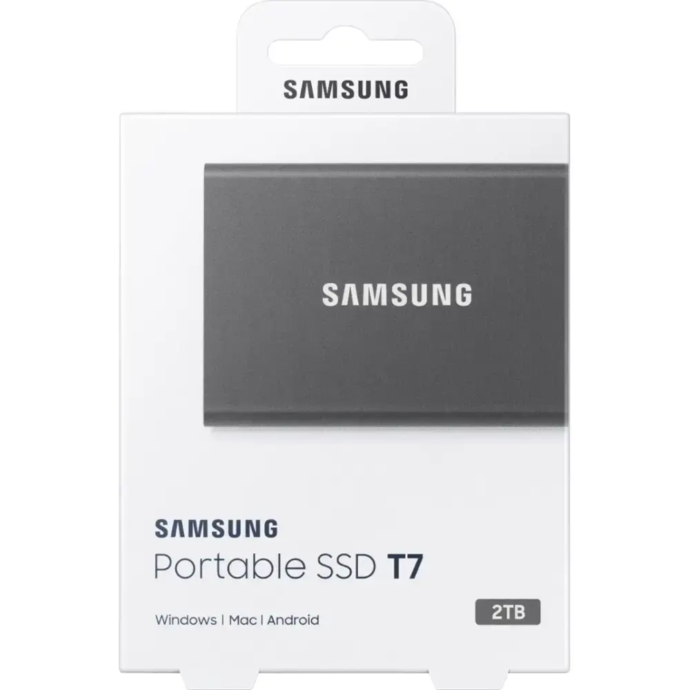 Keep your data secure and transfer files quickly with the Samsung T7 2TB Portable SSD in sleek gray. Featuring USB 3.2 Gen 2 technology, this SSD delivers rapid data transfers, while its durable thermal construction protects against impact and overheating. It includes password protection with 256-bit AES encryption for added security and comes with software and two cable types to ensure seamless file management across multiple platforms.