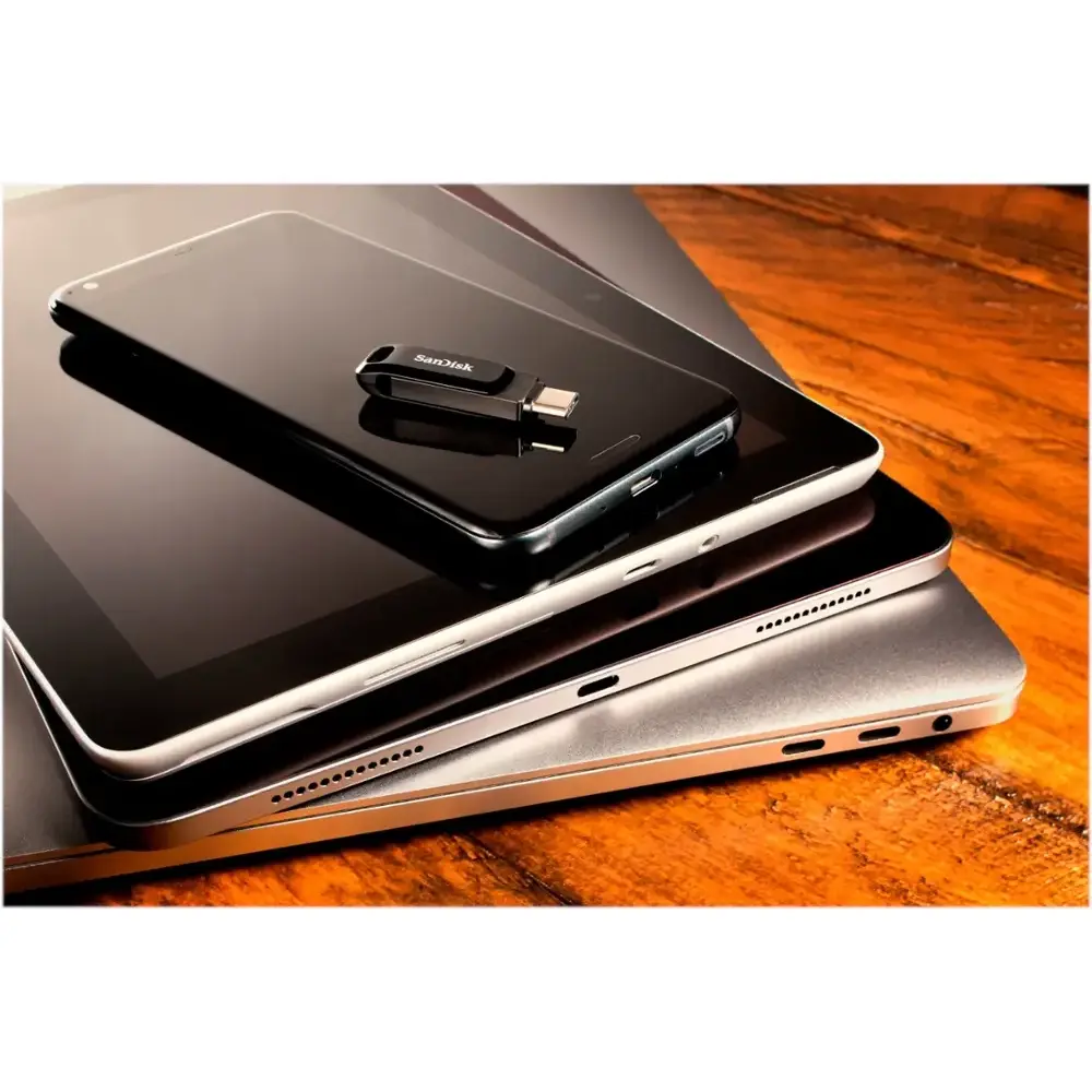 Back up your mobile photos and videos on the go with the SanDisk SDDDC3-256G-A46 Ultra Dual Drive Go USB Type-C flash drive. Featuring dual connectors, it allows you to easily connect to both Type-C and Type-A USB ports for expanded device compatibility. With 256GB of storage, it provides plenty of space for large video files. The drive delivers read speeds of up to 400MB/sec., ensuring fast file transfers between devices.