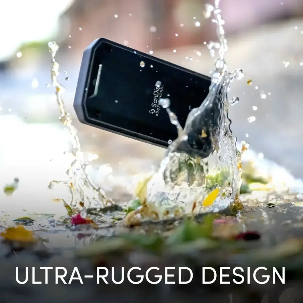 The SanDisk Professional PRO-G40 SSD is a high-performance, ultra-rugged drive designed for Thunderbolt 3 and USB 3.2 Gen 2 compatibility, allowing seamless collaboration across devices. With read speeds up to 2700MB/s and write speeds up to 1900MB/s via Thunderbolt 3, it handles demanding workflows with ease. Its durability is unmatched, offering 3m drop protection, 4000lb crush resistance, and an IP68 dust- and water-resistant rating, making it ready for any environment.