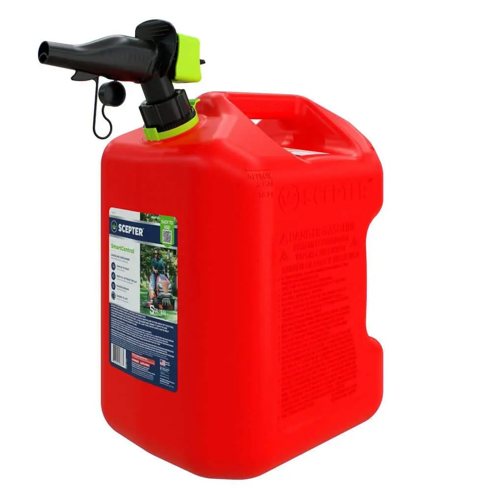 Scepter Smart Control fuel containers are designed for a clean, fast, and hassle-free fueling experience. Featuring a simple spout and an integrated flame mitigation device, these containers offer an easy-to-use, durable design with added protection. The Smart Control spout allows for a controlled, squeeze-trigger flow, ensuring spill-free fueling for everything from lawnmowers to recreational vehicles.