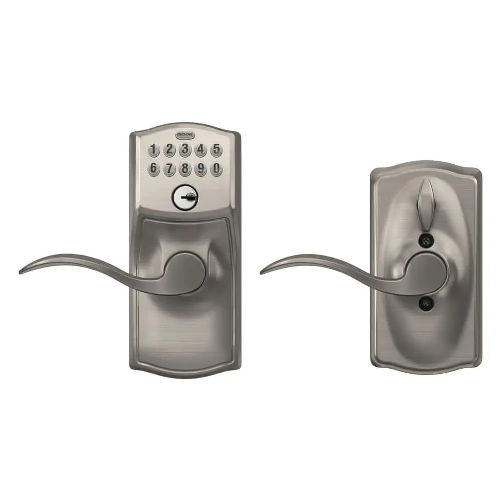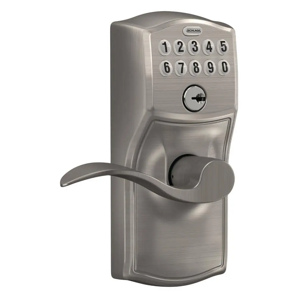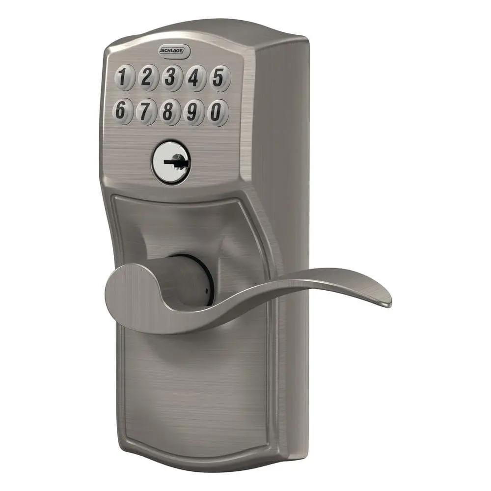 The Schlage Keypad Lever or Knob with Flex-Lock provides the convenience of keyless entry for your home. Perfect for front and back doors, garage entries, or home offices, this electronic lock combines security with simplicity. Featuring wear-resistant, silicone rubber buttons with LED backlighting, access is both safe and easy. With over 100 years of expertise in innovative door hardware, Schlage is a trusted name in home security.