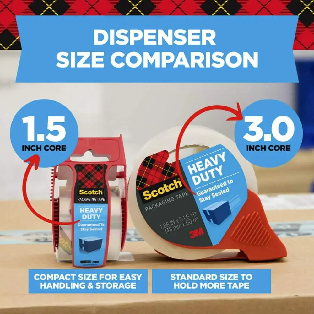 The Scotch 1.88 in. x 54.6 yds. Heavy Duty Shipping Packaging Tape with Dispenser is designed to provide strong, reliable sealing for all your packaging needs. Its heavy-duty construction ensures durability and security for your packages. The tape measures 1.88 in. x 54.6 yds., offering long-lasting use for multiple shipments. The included convenient dispenser allows for easy and quick application, making it a hassle-free solution for any packing task. With its strong adhesion, this tape ensures a secure, lasting hold on various surfaces, making it perfect for versatile use in shipping, packing, and beyond