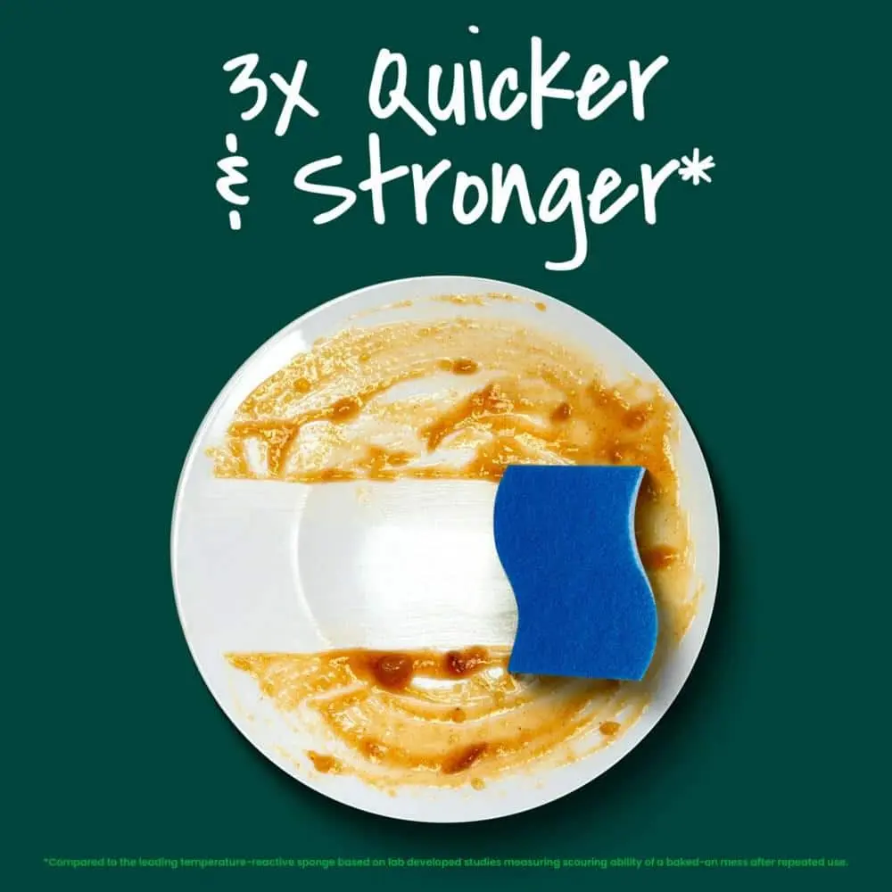 Experience a quicker and more sustainable clean with Scotch-Brite Zero Scratch Non-Scratch Scrub Sponges. These sponges clean 3x faster than leading temperature-reactive sponges, based on lab-developed studies measuring scouring ability after repeated use. Perfect for everyday cleaning of grease, grime, and dirt, they’re safe for use on surfaces like non-stick cookware, countertops, tubs, and more, without damaging protective coatings. The scrubbing fibers are made from 100% recycled content, providing a sustainable cleaning option. For easy maintenance, simply place the sponges in the dishwasher's top rack for cleaning and reuse. Trusted by consumers, Scotch-Brite is America's #1 selling scrub sponge brand, known for its ability to tackle everyday messes in the kitchen and beyond.