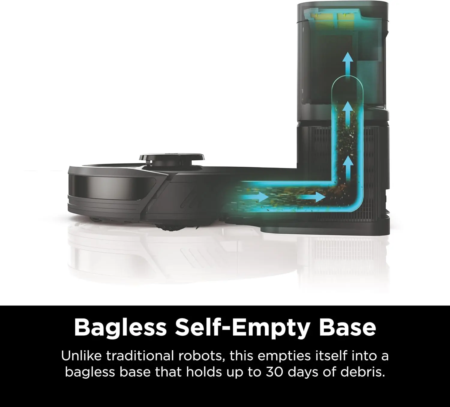 • Self-Emptying Base: Holds up to 30 days of dirt and debris.
