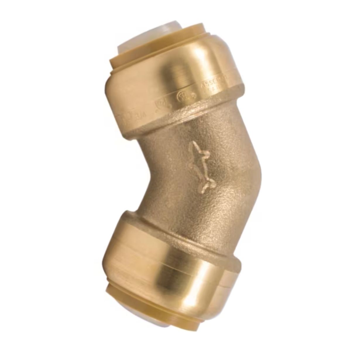 SharkBite 3/4 in. Push-to-Connect Brass 45-Degree Elbow Fitting is the fastest way to connect PEX, Copper, CPVC, PE-RT, or HDPE pipe in any combination. No soldering, clamps, unions, glue, or special tools required. Simply insert the pipe and the teeth bite down and grip tight, while a specially formulated O-ring compresses to create a watertight seal. Changes can easily be made by rotating the fitting after installation. Removing the fitting is just as fast using a disconnect tool so fittings and valves can be easily changed or reused. Designed with stainless steel gripping teeth for a secure connection, chlorine-resistant O-ring for a long-lasting seal and backed by a 25-year warranty.Fastest way to connect PEX, copper, CPVC, PE-RT or HDPE PipeRequires no special tools to install on hot or cold water linesWorks on wet lines, rotatable after installation & removable