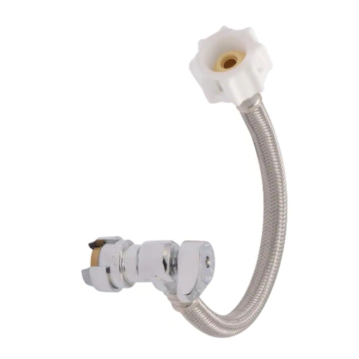 The 1/2 in. SharkBite Click Seal Toilet Connector: Easiest way to install a new toilet line. Perfect for potable water and hydronic applications with shut-off needs. Join copper, CPVC, or PEX pipe effortlessly, no soldering, clamps, unions, or glue. Stainless steel teeth grip tight, O-ring ensures perfect seal. Fast disassembly with disconnect tool for easy changes and reuse. Rotatable for tight spaces. Certified for potable water supply and hydronic heating. "Click" Seal technology for secure seal without tools—simply turn the Click Seal nut until it clicks.Push to Connect system, quick and easy installation in secondsWorks on any combination of Copper, PE-RT, CPVC, PEX PipeDIY Kits provide everything you need to complete the job