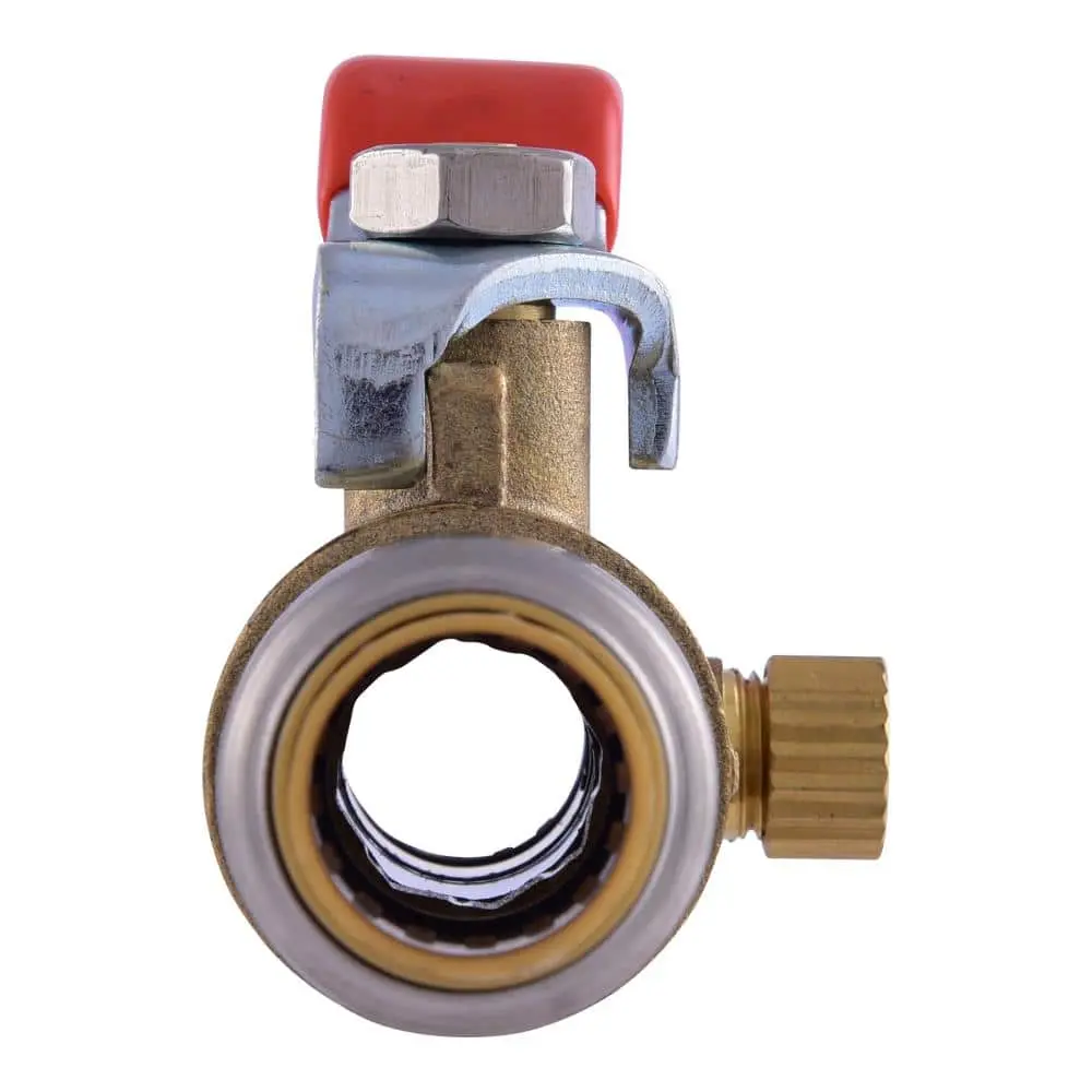 SharkBite Max push-to-connect ball valves offer the quickest and easiest installation for new or replacement water shut-off valves. The redesigned stainless steel collet retainer enhances strength and durability, offering a 250 psi pressure rating. These fittings and valves eliminate the need for a PEX tube liner, and their re-engineered body allows for easy pipe insertion with less force. The quarter-turn handle provides fast water flow control, even in tight spaces. No soldering, clamps, unions, glue, or special tools are required. After the pipe is inserted, stainless steel teeth securely grip the pipe while an O-ring creates a watertight seal. The valve is rotatable after installation for adjustments, and can be quickly removed using a disconnect tool for easy changes or reuse.