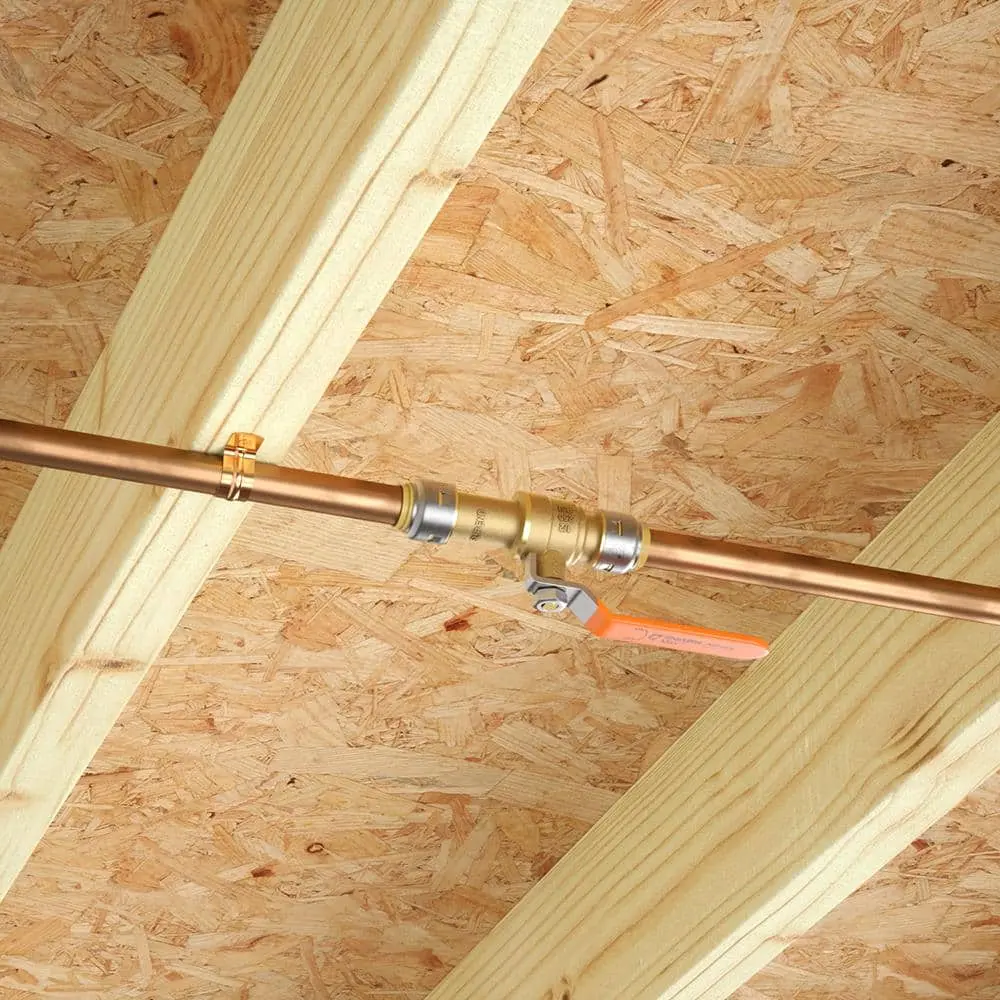 SharkBite Max push-to-connect ball valves offer a quick and easy way to install new or replacement water shut-off valves. Featuring a newly designed stainless steel collet retainer for added strength and durability, these valves have a 250 psi pressure rating. SharkBite Max fittings and valves eliminate the need for PEX tube liners and require less force for pipe insertion due to the re-engineered body design. The single-lever quarter-turn handle provides easy and efficient water flow control, even in tight spaces. No soldering, clamps, unions, glue, or special tools are necessary. The stainless steel teeth securely grip the pipe while the O-ring compresses to create a watertight seal. The valve is rotatable after installation for quick adjustments and can be easily removed with a disconnect tool for reuse.