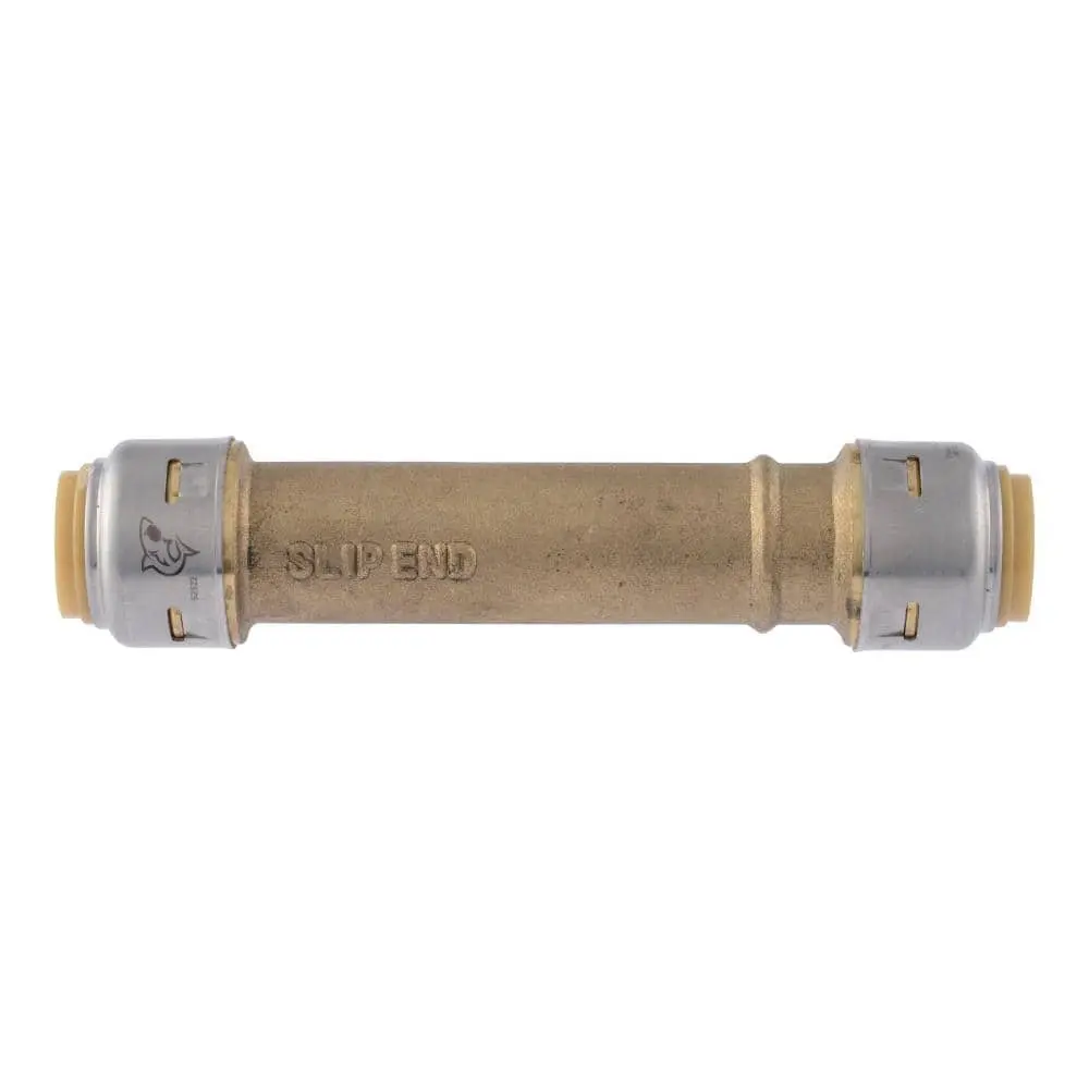 SharkBite Max push-to-connect slip fittings offer the quickest solution for repairs on copper or CPVC pipes. These slip fittings allow you to remove only the damaged section of pipe (up to 2 in.) without replacing the entire pipe. Featuring a newly designed stainless-steel retainer for added strength and durability, these fittings provide a 400 PSI pressure rating. The re-engineered body reduces the effort required for pipe insertion, making repairs even easier. No soldering, clamps, unions, glue, or special tools are needed for installation. The fitting can be rotated after installation for quick adjustments, and removal is just as fast using a disconnect tool, allowing fittings and valves to be changed or reused. SharkBite Max fittings are faster than traditional plumbing methods, as compared to first-generation SharkBite push-to-connect products.