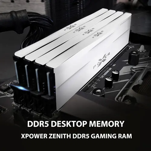 Key Features 64GB (2 x 32GB) Capacity 6000 MHz Clock Speed CL30 CAS Latency DDR5 Configuration PC5-48000 288-Pin UDIMM 1.35V 30-38-38-96 Timings Intel XMP 3.0 and AMD EXPO Support Boost performance and your system's multitasking ability using the white 64GB Zenith 6000 MHz DDR5 Desktop Memory Kit from Silicon Power. Comprising this kit are two sticks of 32GB DDR5 6000 MHz CL30 memory for a total of 64GB. They are compatible with 288-pin DIMM slots on desktop motherboards. Support for Intel XMP 3.0 and AMD EXPO opens up options for overclocking with your CPU, and a heatsink dissipates heat to keep the memory cool while under load.