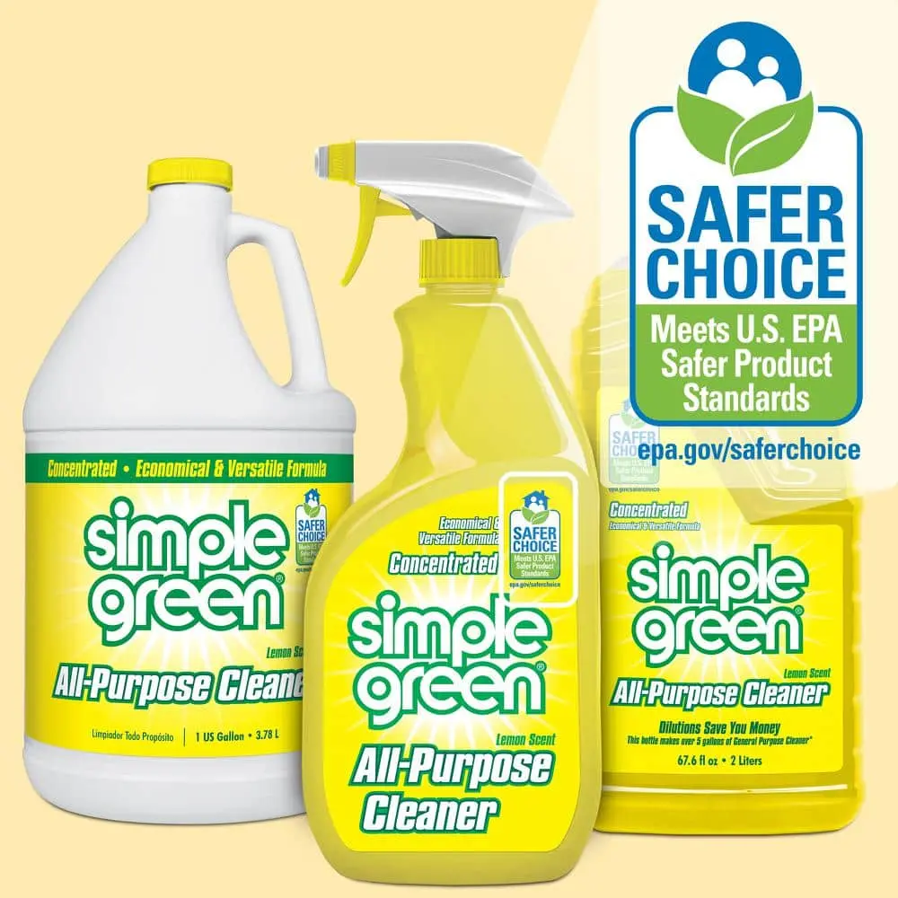Simple Green Lemon All-Purpose Cleaner is an EPA Safer Choice Certified, powerful and biodegradable cleaner and degreaser. It removes tough dirt, grime, grease, food spills, ink, pet stains, and more without harmful chemicals. The concentrated formula offers up to 30x the cleaning value, and can be used full-strength for heavy messes or diluted for daily cleaning. Ideal for use on various surfaces like floors, carpets, countertops, appliances, and furniture, it replaces multiple harsh cleaners, making cleaning both effective and safer. Plus, it deodorizes with a refreshing lemon scent.