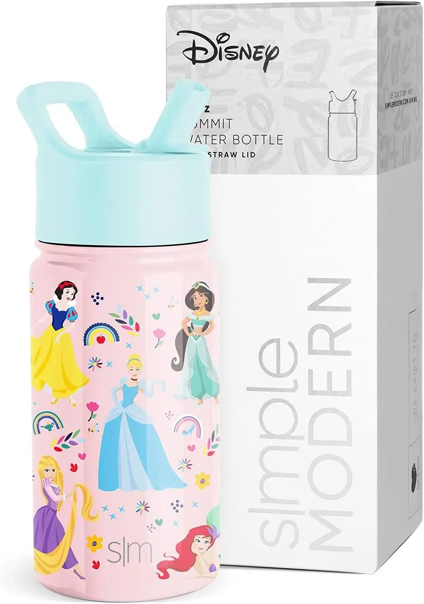 Brand: Simple Modern Capacity: 14 fl oz Color: Disney-Princess Rainbows Recommended Use: Water Features: Leakproof, Dishwasher Safe, Double Wall, Carrying Loop