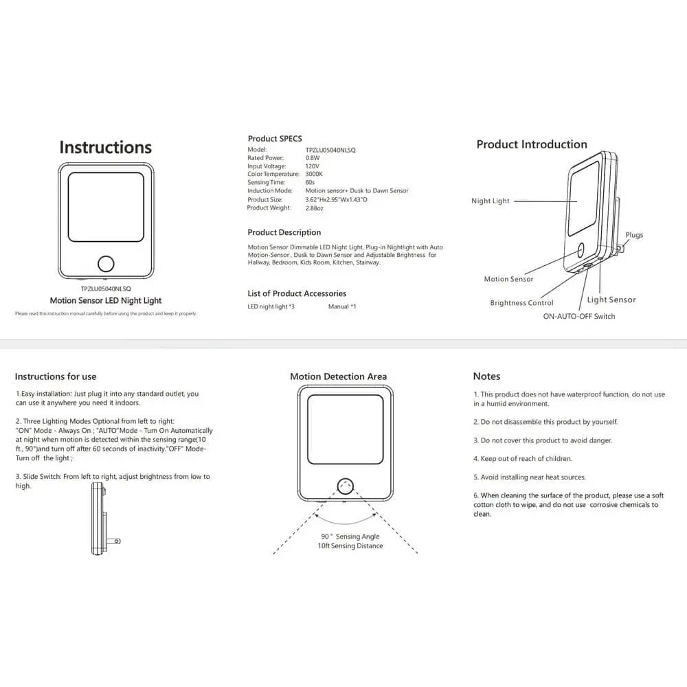 The Motion Sensor Dimmable Square LED Nightlights use just 0.8-Watt of power and have a lifespan of 15,000 hours. These nightlights are mercury-free, lead-free, and do not emit UV or IR radiation, making them an eco-friendly option while creating a safer, healthier environment for your family.