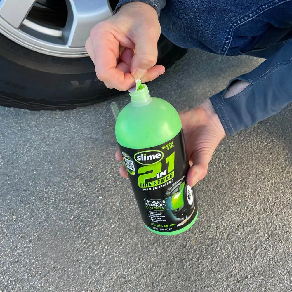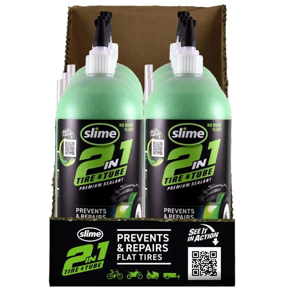 Whether your tire has a tube or is tubeless, Slime’s 2-in-1 Tire & Tube Premium Sealant has you covered. This versatile sealant prevents and repairs flats in all off-highway tires and tubes, instantly sealing punctures up to 1/4" in tires and 1/8" in tubes. Slime’s patented formula seeks out puncture points, using escaping air pressure to create a durable, flexible plug that stops leaks immediately. Enjoy up to two years of continuous flat protection for your non-highway vehicles, including bicycles, ATVs, golf carts, lawn mowers, and more.
