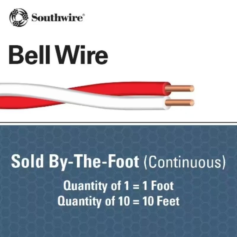 The Southwire 20/2 Twisted CU Bell Wire, sold by the foot, is a type of low-voltage wire used for doorbell systems and other low-current applications. Here are the key details: Gauge: 20 AWG (American Wire Gauge) Conductors: 2 (twisted pairs of copper wire) Material: Copper (CU) Insulation: Typically has a plastic insulation that helps protect the wires and ensure reliable performance. Twisted Pair Design: The wires are twisted together to reduce interference and improve signal quality. Length: Sold by the foot, allowing for custom lengths as needed. This wire is used for connecting doorbell components, and its twisted design helps in reducing electrical noise and ensuring a stable connection.