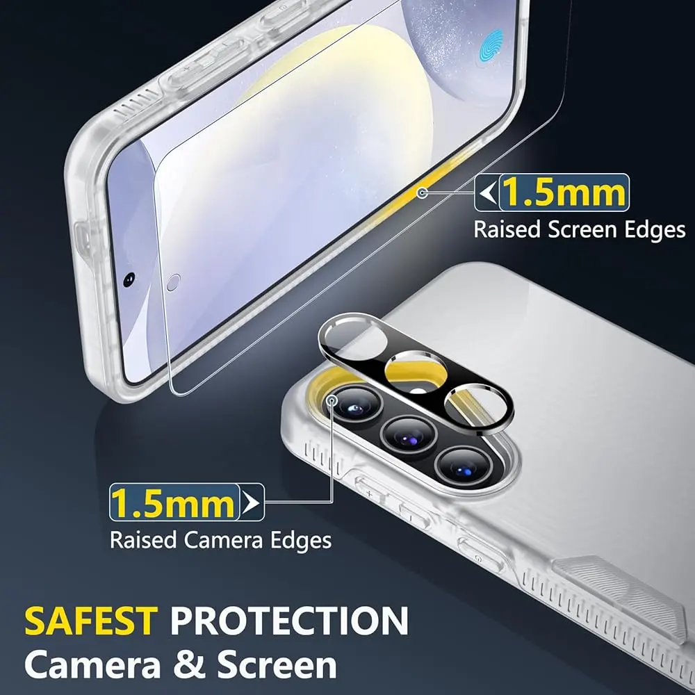The SPIDERCASE for Samsung Galaxy S24 Plus offers heavy-duty shockproof protection while maintaining a sleek matte clear design. Specifically designed to safeguard your device, this case provides robust defense against drops, bumps, and scratches, ensuring your phone stays protected in any situation. The shockproof construction absorbs impacts, while the matte finish provides a smooth, anti-glare surface that resists fingerprints and smudges.