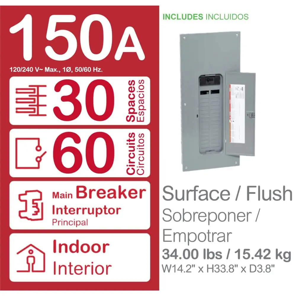 - Single-phase, indoor main breaker Homeline breaker box