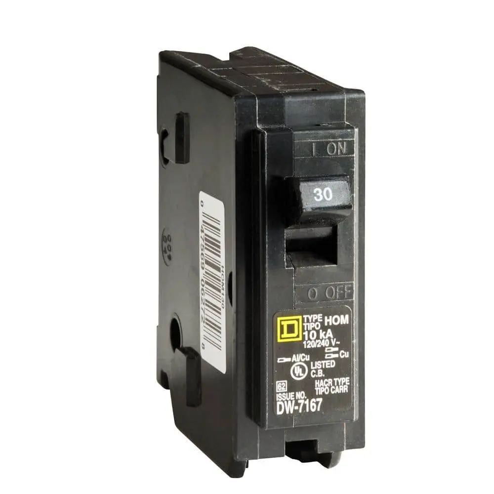 The Square D by Schneider Electric Homeline 30 Amp One-Pole Circuit Breaker is designed to protect your electrical system from overloads and short circuits. It is compatible with Homeline load centers and CSED devices. This ANSI-certified, UL-listed breaker is rated for 120/240 VAC and 10,000 AIR. Known for Square D's reliable quality, Homeline circuit breakers offer excellent value while delivering top-tier performance. Exclusively designed for the residential market, Homeline products provide everything needed to efficiently distribute electricity throughout your home.