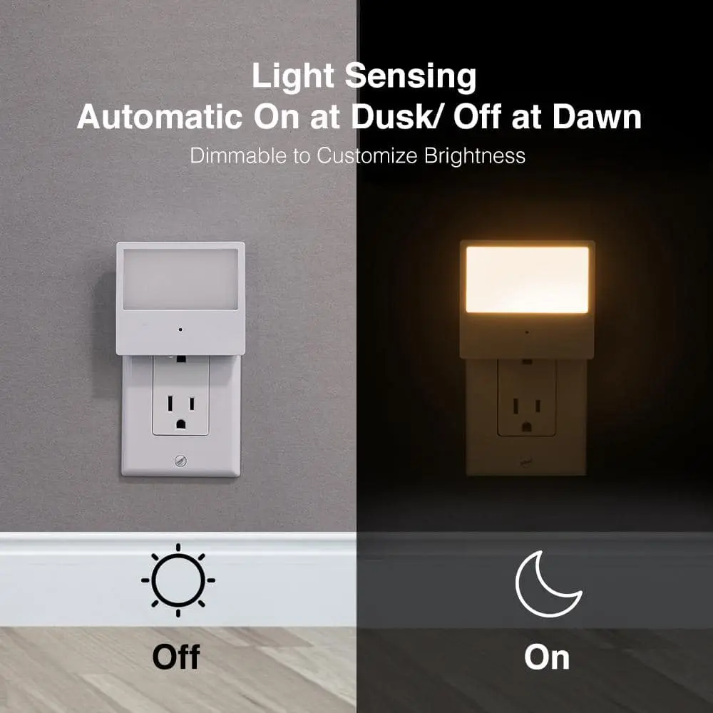This sleek, low-profile LED night light features an automatic dusk-to-dawn sensor that activates the light in low light conditions and deactivates it in brighter settings. Equipped with a dimming switch, you can adjust the brightness to your preference. With a lifespan of 15,000 hours and only consuming 0.7 watts of power, this energy-efficient LED night light helps conserve energy while providing safe, cool lighting. It’s the ideal solution for kitchens, hallways, living rooms, bedrooms, bathrooms, or any area in need of subtle illumination.