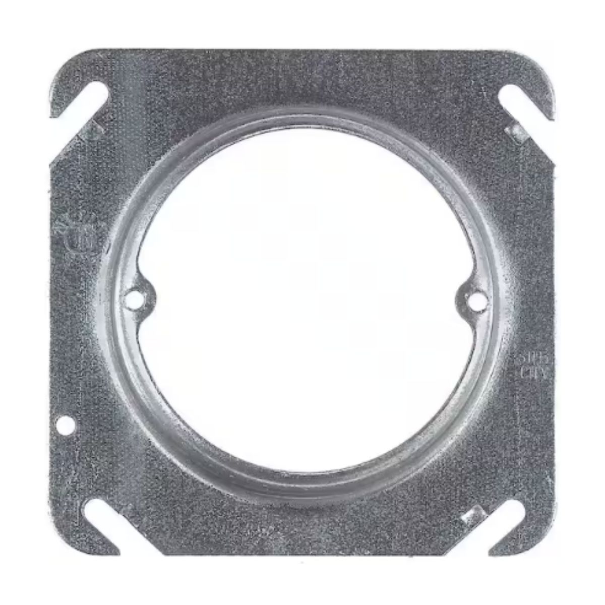 The 2-Gang Square Mud Ring is designed to be mounted on top of 4-inch square electrical boxes, ensuring a flush surface. With a 5/8 inch raised profile and a 2 3/4 inch round opening, it provides ample space for wiring connections. This mud ring is specifically intended for fixtures weighing up to 50 lbs., but it is not fan rated, so it should not be used for ceiling fan installations. Its sturdy construction and precise design make it an ideal choice for securely mounting light fixtures and similar accessories.