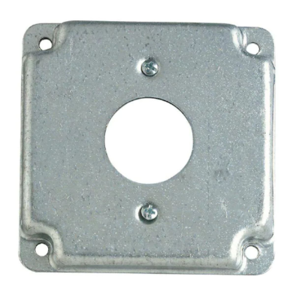 Utilize the 2-Gang Round Receptacle Cover for secure mounting on a square electrical box. Crafted from steel galvanized with zinc, this cover ensures long-lasting durability. Designed for use with one single flush receptacle, it features a hole diameter of 1-13/32 inches, providing a snug fit and reliable protection for your electrical connections.
