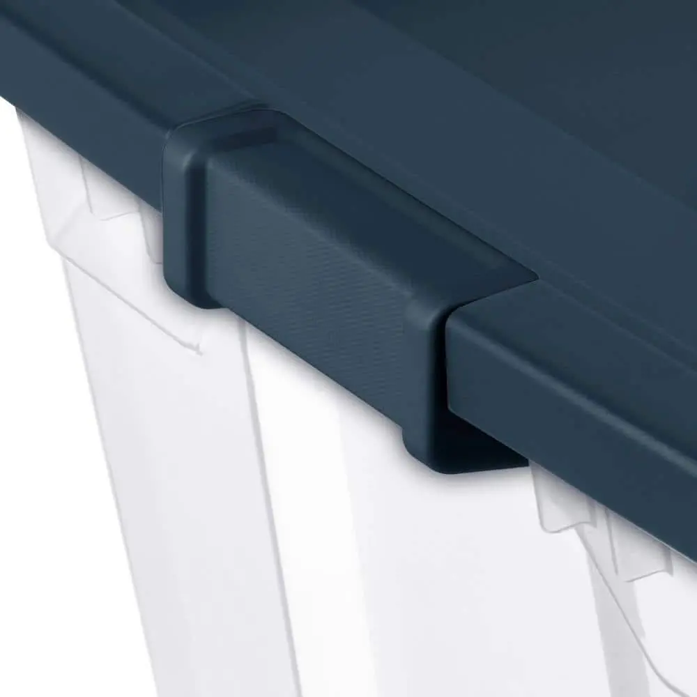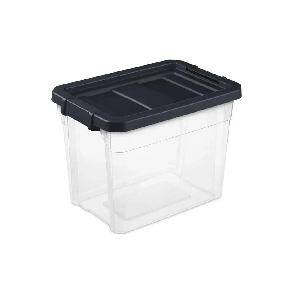 The Sterilite 30-Qt. Stacker Box with an ink-colored lid is designed to keep your items secure and organized. Its durable plastic construction ensures long-lasting use, while the secure ink-colored lid keeps your contents protected. The clear base allows for easy visibility of stored items, making it convenient to find what you need. Its stackable design maximizes your storage space, and the 30-quart capacity is perfect for organizing various household items.