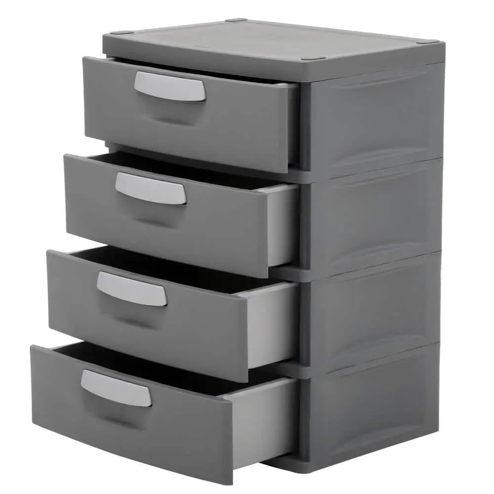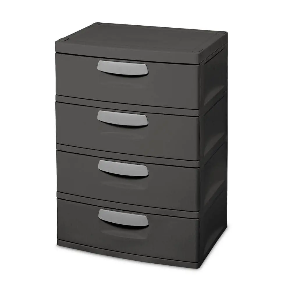The Sterilite 35.5 in. H x 26.625 in. W x 19.25 in. 4-Drawer Plastic Chest offers an ideal size with 35.5 in. H x 26.625 in. W x 19.25 in. dimensions, perfect for various storage needs. Featuring 4 drawers, it provides ample space for organizing items, while the durable plastic construction ensures long-lasting use. The smooth glide drawers make it easy to open and close for convenient access. This versatile chest is perfect for home, office, or garage organization and offers a stackable design, allowing for space-saving storage when combined with other units