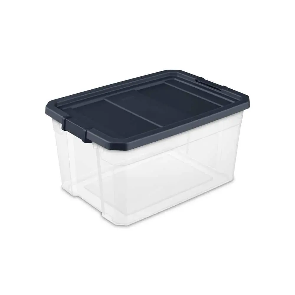 The Sterilite 76-Qt. Stacker Box - Ink Lid is the perfect storage solution for organizing your home. With a 76-quart capacity, it provides ample space for storing various household items, clothing, or seasonal goods. The secure ink-colored lid offers a stylish touch while keeping your items protected, while the clear base allows for easy visibility of contents. Designed to be stackable, this box helps maximize your storage space, making it ideal for use in closets, garages, or attics