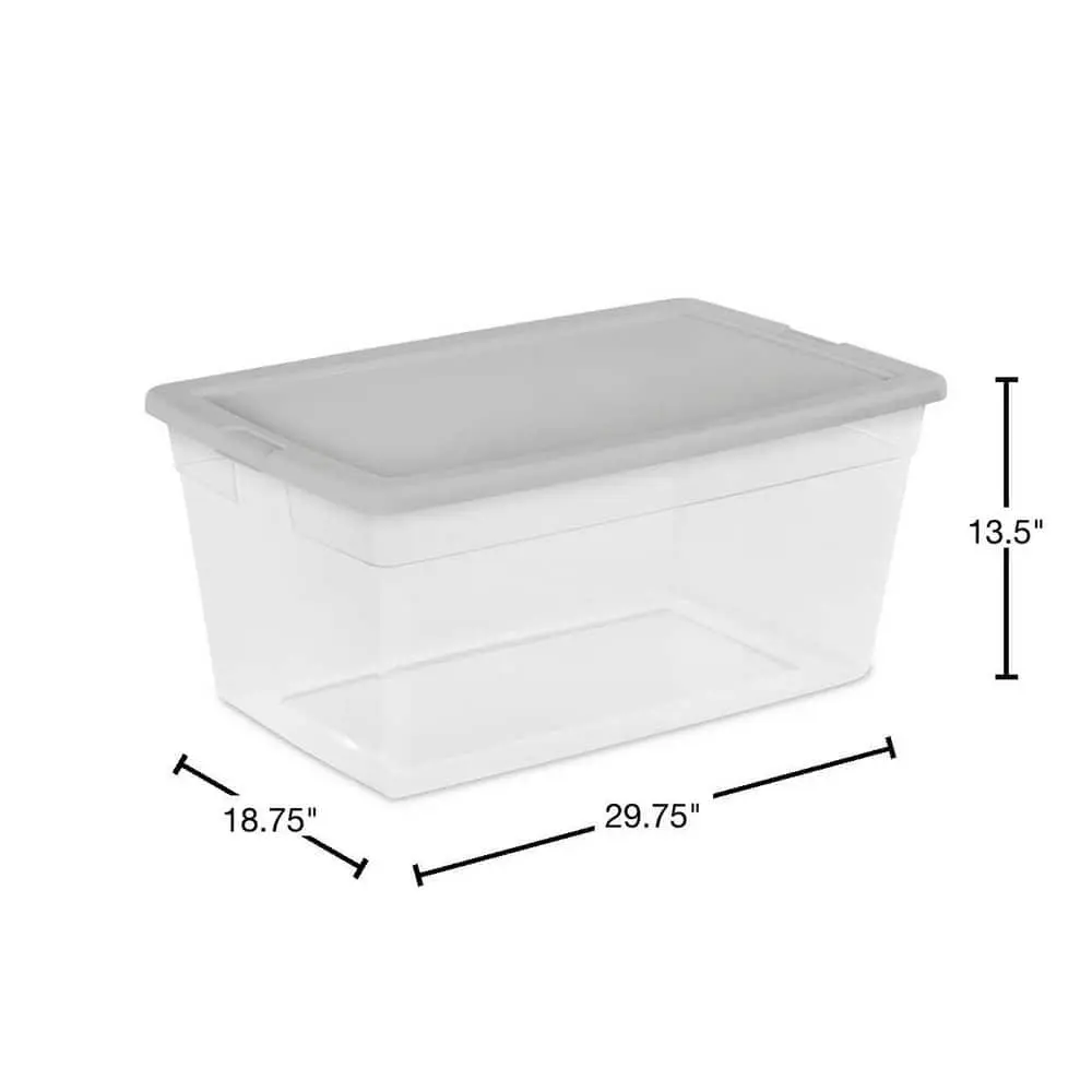 The Sterilite 90 Qt. Storage Box offers a spacious 90-quart capacity, perfect for storing bulky items while keeping them protected. Made from durable, clear plastic, it allows for easy visibility of contents without opening the lid. The secure snap-on lid ensures items stay dust-free and protected, while the stackable design maximizes storage efficiency. With integrated handles, it provides a comfortable grip for easy transportation, making it ideal for organizing your home, garage, or office