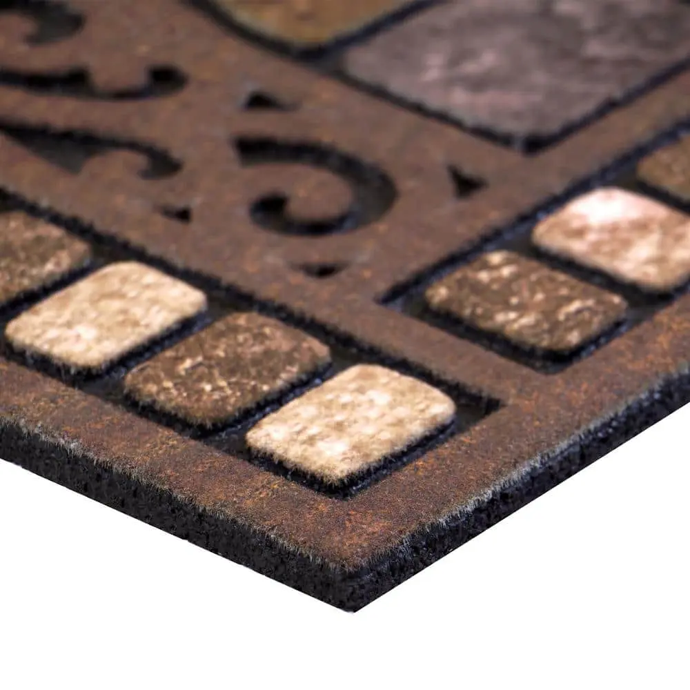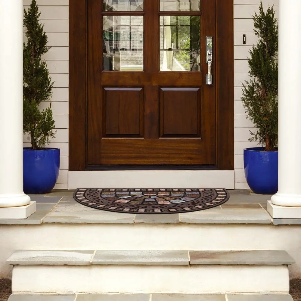 The StyleWell Half Round Stone 18 in. x 30 in. Door Mat adds a stylish touch to your entryway with its unique half-round design. Made from durable materials, this mat offers long-lasting use and features a versatile stone color that complements a variety of home decors. The non-slip backing ensures it stays securely in place, providing safety and stability. Easy to maintain, simply shake or rinse to keep it looking clean and fresh. A practical yet attractive addition to any home.