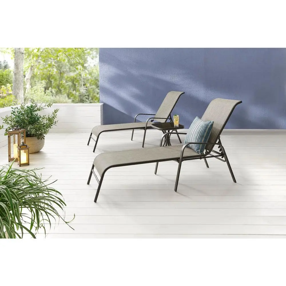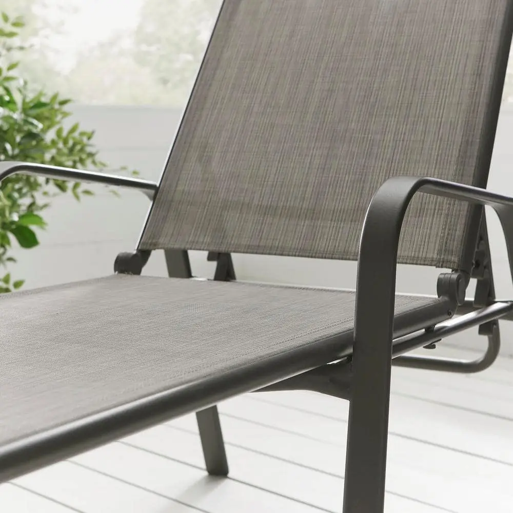 An ideal addition to your outdoor space, the Hampton Bay Mix and Match Sling Outdoor Chaise Lounge offers comfortable seating for your sunroom, patio, or deck. Featuring a dark brown frame and a taupe sling seat, this lounge chair complements various exterior decor styles, transforming any outdoor area into a relaxing retreat. The stackable design is built with a durable steel frame, a powder-coated finish, and weather-resistant sling fabric for long-lasting use. No assembly is required for easy setup.