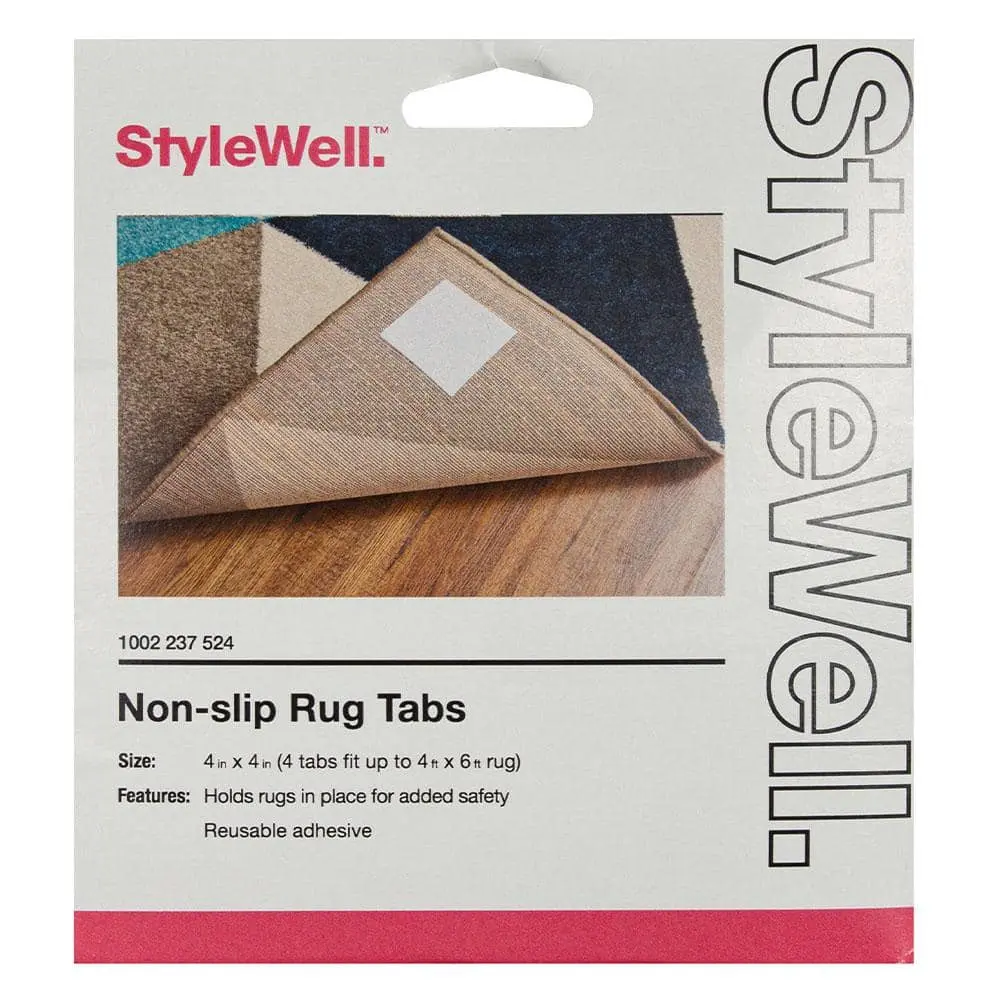 The StyleWell Multi-Surface Adhesive Tabs Rug Pad provides a simple and effective way to keep rugs securely in place. Featuring a strong adhesive, these 4 in. x 4 in. tabs firmly grip various surfaces, including hardwood, tile, and laminate, ensuring versatility for any room. Designed for easy use, the peel-and-stick application allows for quick setup without hassle. When it’s time for removal, these tabs peel off cleanly without leaving residue or damaging your floors. By preventing slipping and bunching, they enhance safety and stability, making them a reliable choice for any home