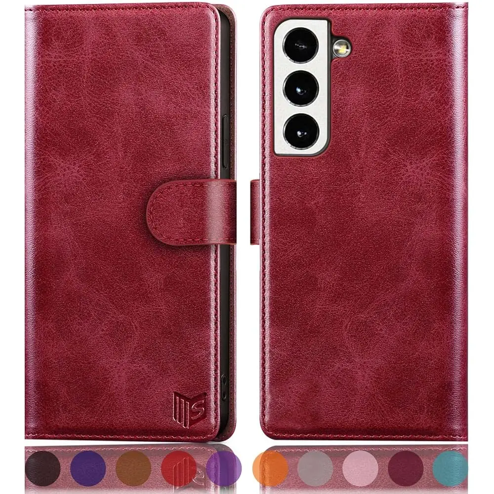 SUANPOT for Samsung Galaxy S22 with RFID Blocking Leather Wallet case - Red