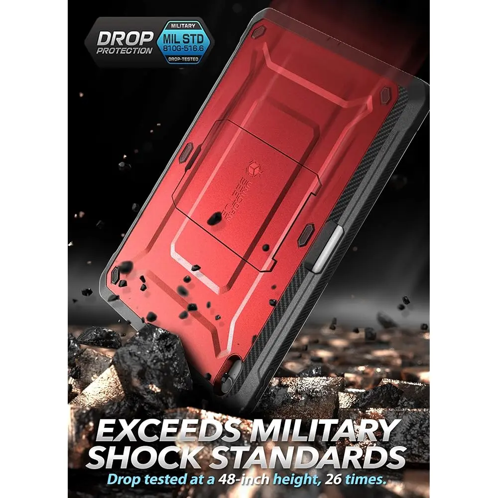 The SUPCASE Unicorn Beetle Pro for iPad 10th Generation (2022) offers rugged protection with a polycarbonate backplate and built-in screen protector. It includes a pop-out kickstand for hands-free viewing and easy access to all ports, buttons, and cameras. Designed for the 10.9-inch iPad, this case provides a solid defense against drops and scratches, while maintaining full functionality of your device. The built-in pencil holder ensures your Apple Pencil is always within reach.