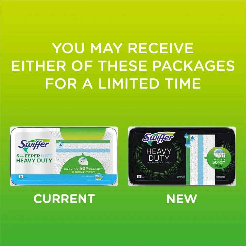 Swiffer Sweeper Heavy Duty Wet Cloths trap and lock 50% more dirt, making it easier to clean hard floor surfaces quickly. They are safe for all finished floors and feature a scrubbing strip to tackle tough spots. The dirt magnet strip funnels dirt and liquids into the center of the pad, keeping your floors spotless. Compared to regular Swiffer wet mopping cloths, these cloths offer superior performance. Do not use on unfinished, oiled or waxed wood, non-sealed tiles, or carpeted floors, as they may be water-sensitive. Enjoy up to 4 hours of freshness after the initial use.