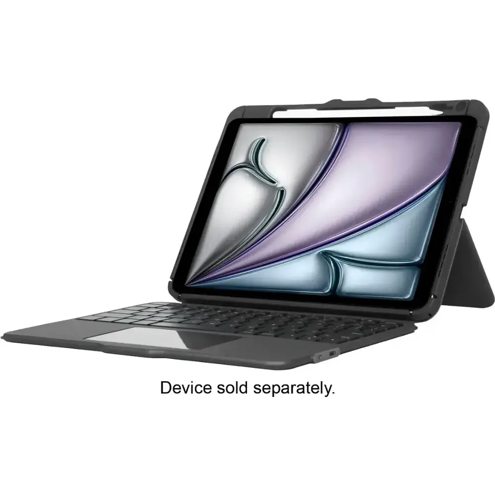 The Targus VersaVu BT Keyboard Case offers universal compatibility, supporting various iPad models including iPad 11" (A16), iPad Air 11" (M3/M2), iPad 10.9" (10), iPad Air 10.9" (5/4), and iPad Pro 11" (4/3/2/1). It features a detachable Bluetooth keyboard for a seamless typing experience, along with a 360-degree rotation capability that allows effortless switching between portrait and landscape modes. Built with durable construction, it provides reliable protection from scratches and bumps. The case also includes an auto sleep/wake function, enhancing battery efficiency and ensuring convenience.