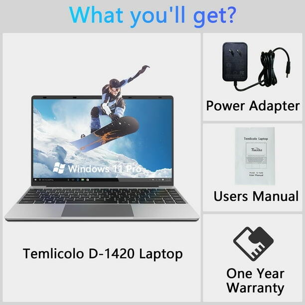 The Temlicolo 14.1-inch Laptop delivers a smooth and reliable experience for everyday productivity, entertainment, casual gaming, online learning, and more. Weighing just 2.86 lbs and powered by an Intel Celeron N4020C processor with Windows 11 Pro pre-installed, this lightweight laptop is ready to go wherever life takes you. With a crisp Full HD IPS display, generous storage, and long-lasting battery, it’s built for work and play on the move.