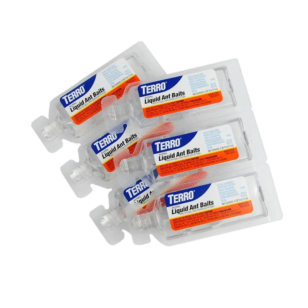 The TERRO Indoor Liquid Ant Killer Baits (6-Count) weigh about 2.2 ounces (0.1375 pounds or 62.4 grams). These baits are designed to kill both visible and hidden ants. They feature a stay-fresh tab to keep the liquid bait fresh until opened and a snap-off design that allows easy opening without the need for scissors. Available in various pack sizes including 12-count, 18-count, and 300-count, they offer an effective solution for ant control. For best results, it's recommended to use all 6 baits to ensure ants have access to an ample supply.
