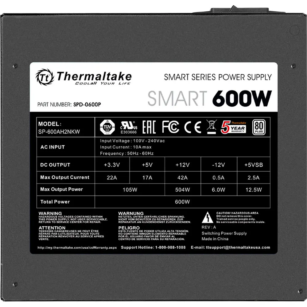 The Thermaltake Smart 600W 80 PLUS Power Supply is a reliable and efficient power supply unit designed to meet the needs of most modern gaming and computing systems. With its 600W of continuous power output and 80 PLUS Gold certification, it delivers stable and efficient power to your components.