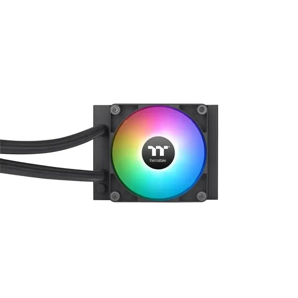 The Thermaltake TH120 ARGB Sync V2 120mm Radiator AIO CPU Liquid Cooler delivers efficient cooling in a compact 120mm radiator design, perfect for small builds. Its ARGB Sync V2 technology allows for stunning, customizable RGB lighting with synchronized effects. The mirror rotating cap design adds a sleek and modern touch while providing flexible orientation. Designed for convenience, this all-in-one liquid cooling system comes pre-assembled for an easy installation process. With a high-performance pump, it ensures optimal heat dissipation and reliability. Finished in sleek black, it blends seamlessly into any PC setup
