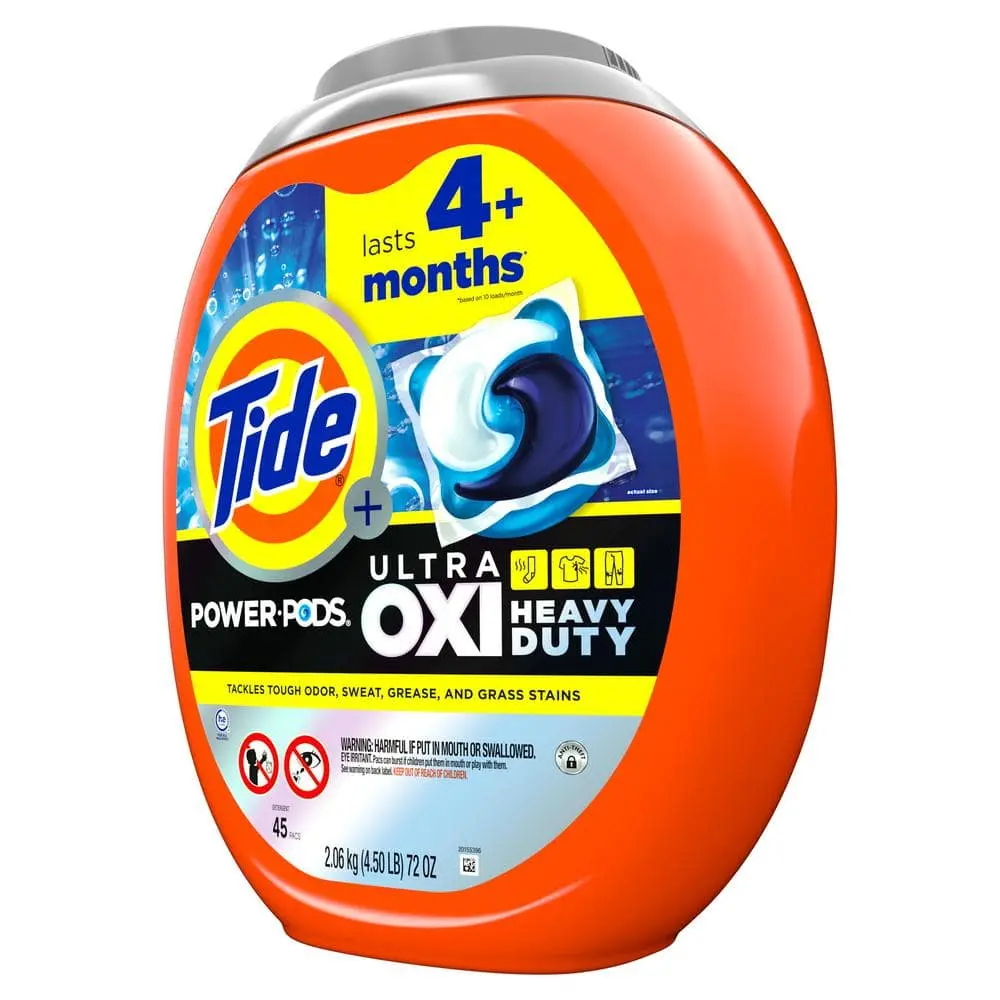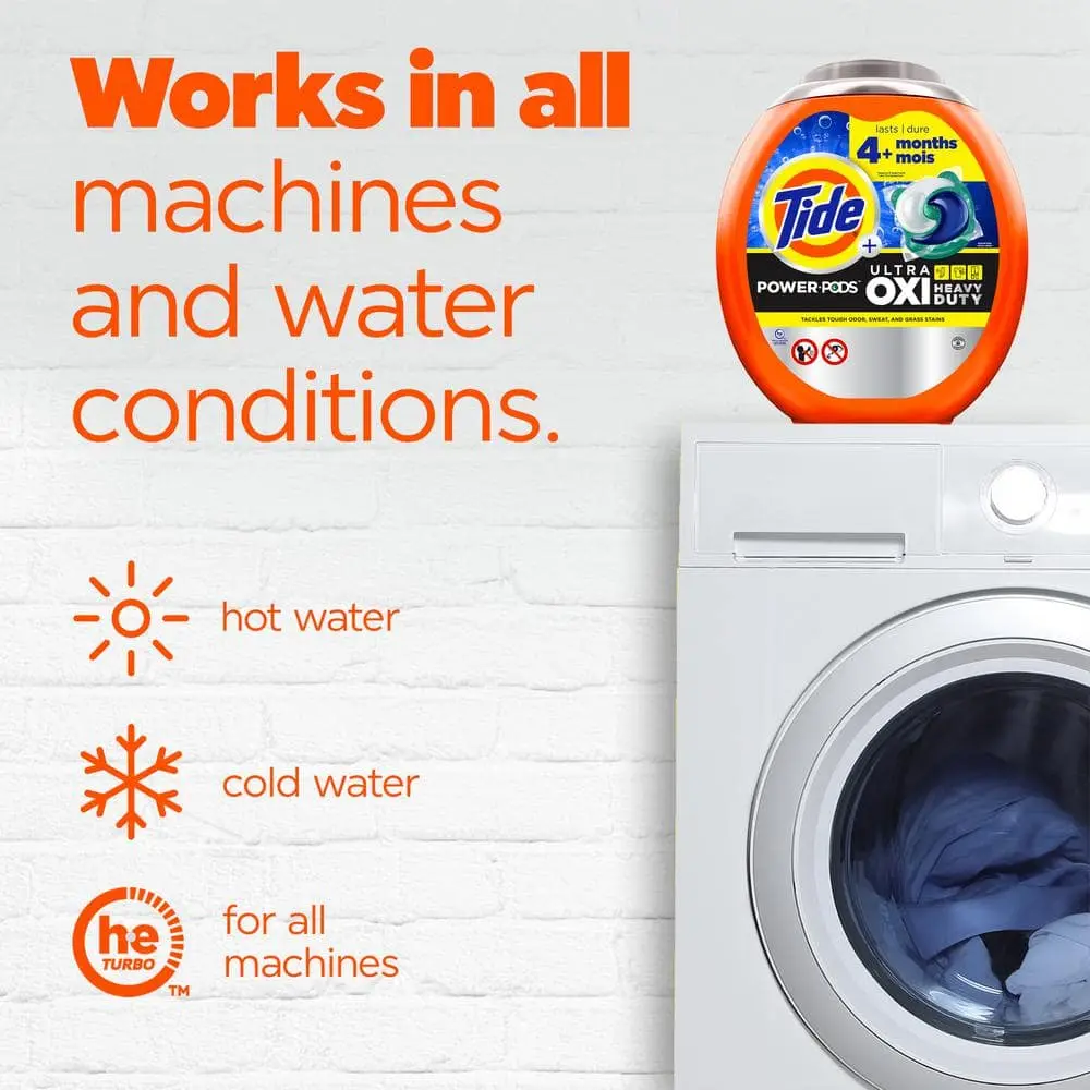 Tide Power PODs Ultra Oxi Plus Heavy-Duty Laundry Detergent is designed for hardworking clothes that need a detergent that delivers exceptional cleaning and fresh scent. With 3X more stain-fighting power, it easily tackles set-in stains, dirt, and tough odors—no pretreating needed. Its ultra-concentrated formula uses less water and more powerful ingredients, providing the best clean for your money, day after day. Compatible with all washing machines and water conditions, including cold water, Tide is trusted as the #1 laundry detergent brand in America* for consistent, reliable results every time.