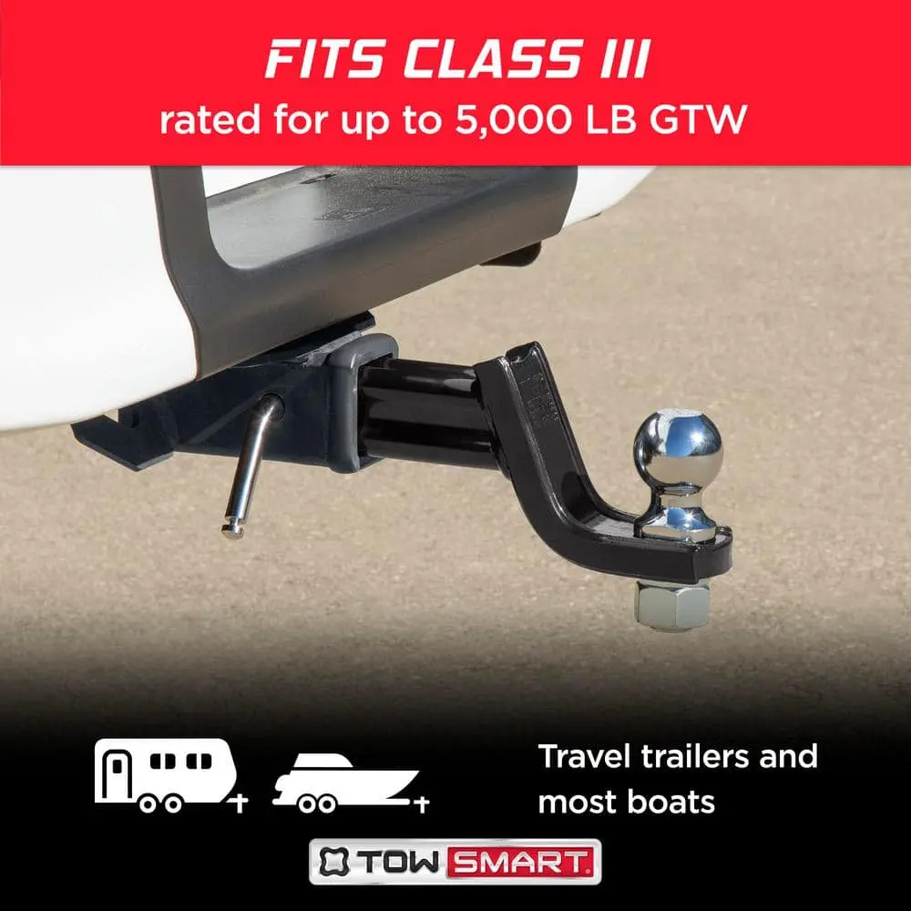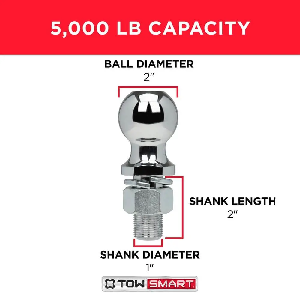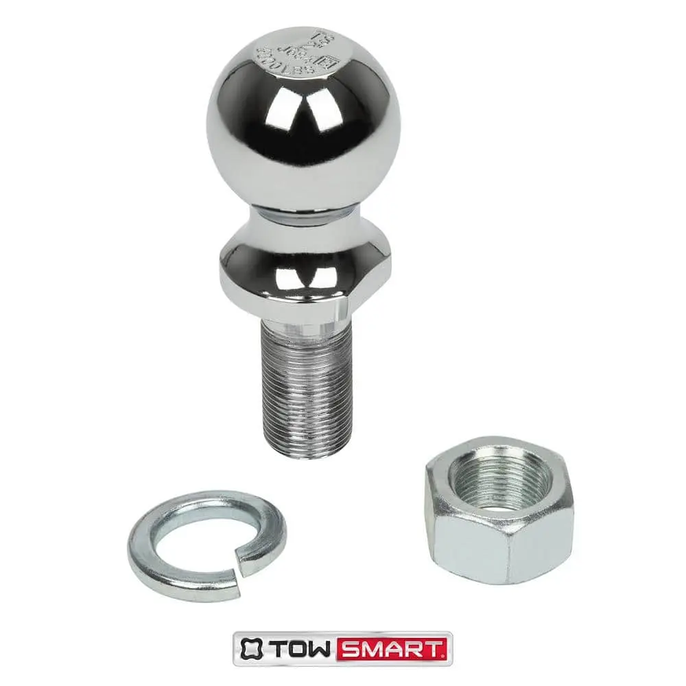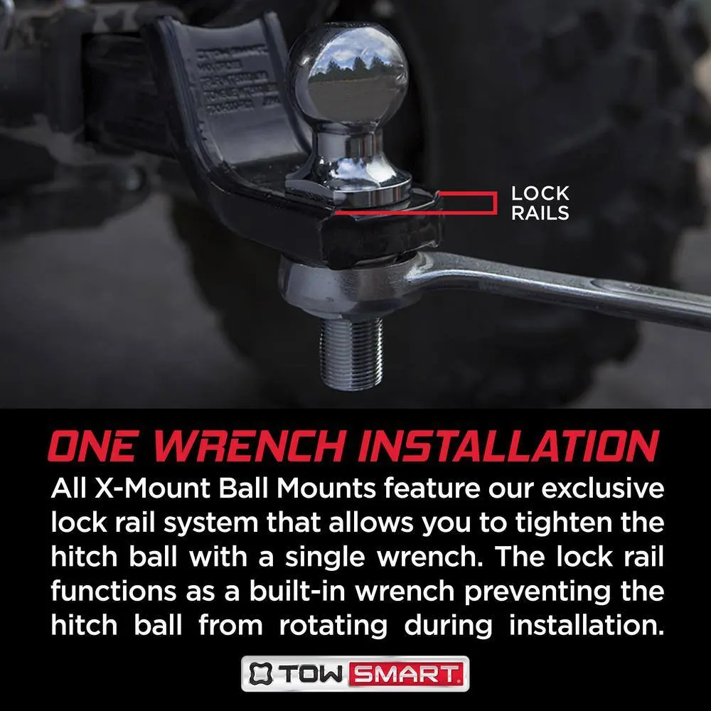 The TowSmart Hitch Ball is essential for securely connecting your vehicle and trailer when towing. Built from heavy-duty steel and featuring a corrosion-resistant chrome-plated finish, this hitch ball ensures durability. It comes with wrench flats for easy positioning in the X-mount lockrail system, which prevents rotation during installation or removal. Its universal wrench flat design is compatible with any standard ball mount. Be sure to know the trailer's total weight (GTW) and your vehicle's maximum towing capacity.