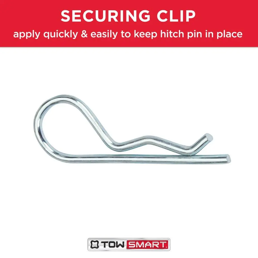 The TowSmart 5/8 in. Standard Bent Pin provides secure protection for your boats, campers, trailers, and other valuable assets from theft. It easily secures your ball mount or hitch accessories to the receiver hitch. Simply insert the pin into the fastener hole after positioning the ball mount or hitch accessory. Ideal for replacing lost, damaged, or corroded hitch pins, it ensures a tight and secure fit. Made from corrosion-resistant materials, it is designed to withstand harsh weather conditions. This product is not recommended for long-term use on vehicles.