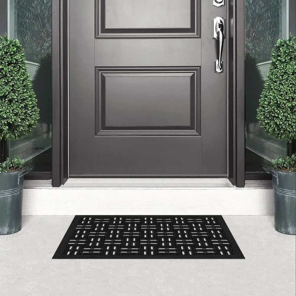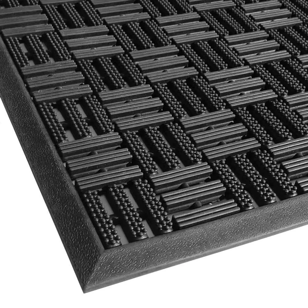 The TrafficMaster Black Rubber 17.5 in. x 29.5 in. Drainage Mat features a durable rubber construction that ensures long-lasting performance in high-traffic areas. Its open drainage design effectively prevents water buildup, making it ideal for wet environments. The slip-resistant surface enhances safety by providing better traction, reducing the risk of slips and falls. Designed for versatility, this mat is weather-resistant and suitable for both indoor and outdoor use. Plus, it is easy to clean, requiring just a quick rinse or wipe-down to maintain its functionality