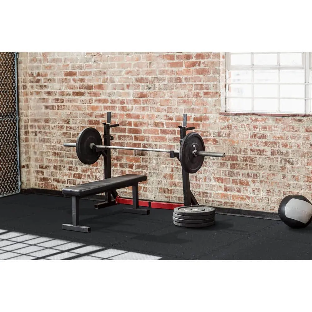 Upgrade your workout space with the TrafficMaster Black with Blue Flecks Foam Shock Absorbing Gym Floor Tiles, designed for impact reduction and enhanced comfort. These 25.2" x 25.2" interlocking tiles feature 0.68-inch thick shock-absorbing foam, providing excellent cushioning and support for various exercises. Each pack includes four tiles covering 17.64 sq. ft., making it easy to customize your gym flooring. The non-slip surface ensures stability, while the durable construction withstands intense workouts. With a sleek black design accented by blue flecks, these tiles add both function and style to your fitness area.