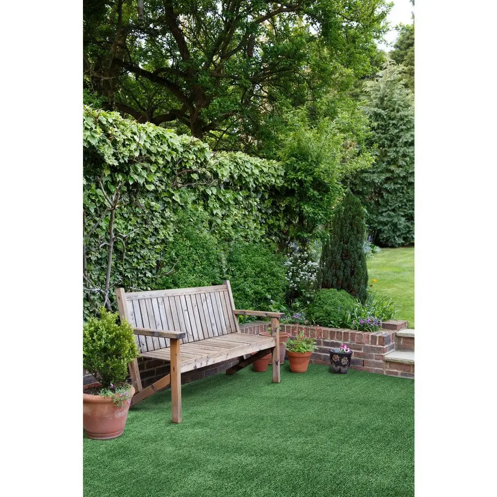 The Trafficmaster Emerald Green 6 ft. x 8 ft. Artificial Grass Rug is perfect for various uses, such as replacing natural grass and enhancing landscapes. With an 8 mm pile height and multicolored blades, it closely resembles real grass, while its three-dimensional blades offer both aesthetic appeal and durability. This low-maintenance turf requires no mowing, watering, or spraying, allowing for years of enjoyment with family, friends, and pets. Ideal for both residential and commercial settings, it is safe for children and pets. The rug is a great solution for hot, dry climates where water conservation is essential or for wet, cold climates, offering a mud-free play area and year-round greenery. For best results, adding 1 to 2 pounds of infill per square foot is recommended, and installation may require accessories like turf tape, staples, and padding.
