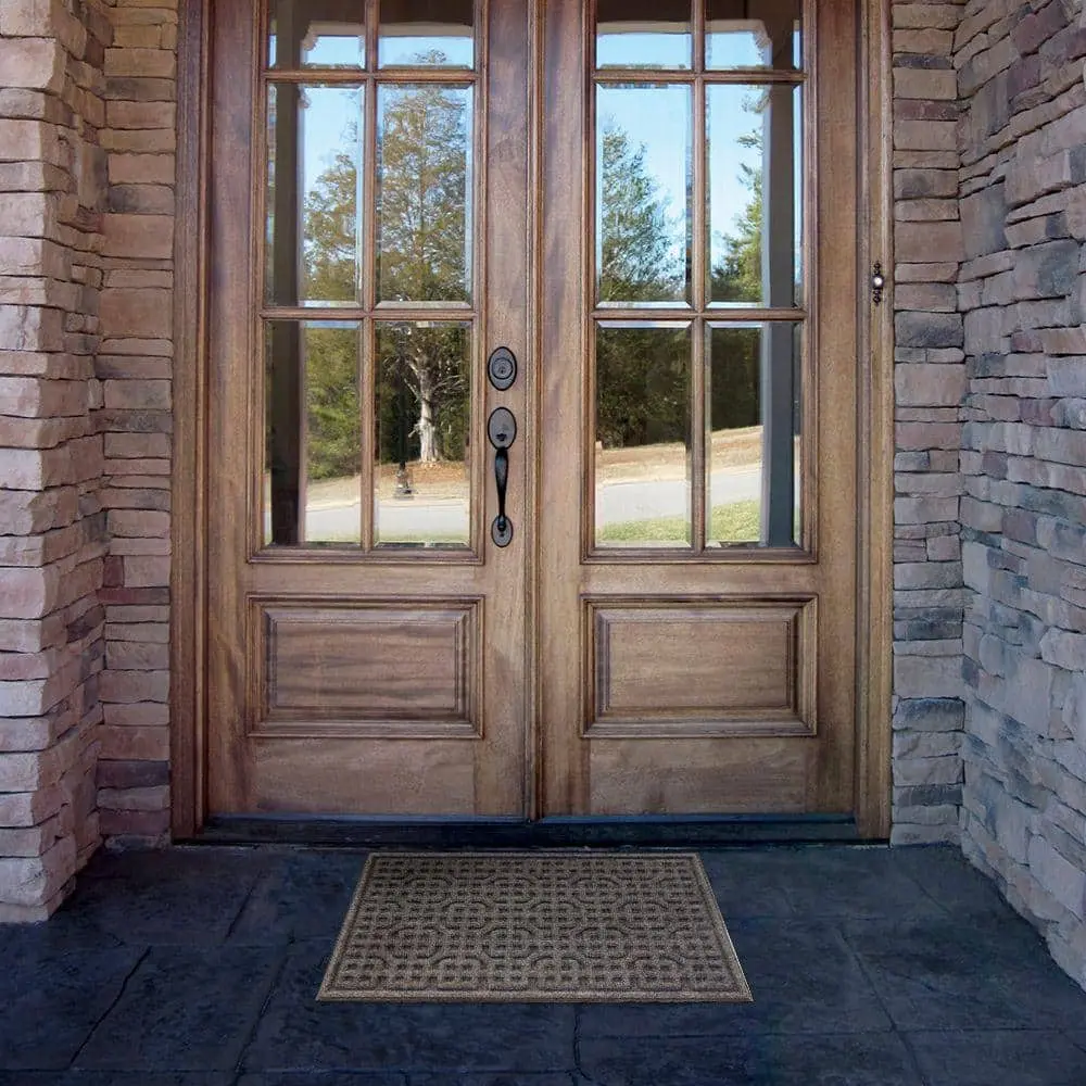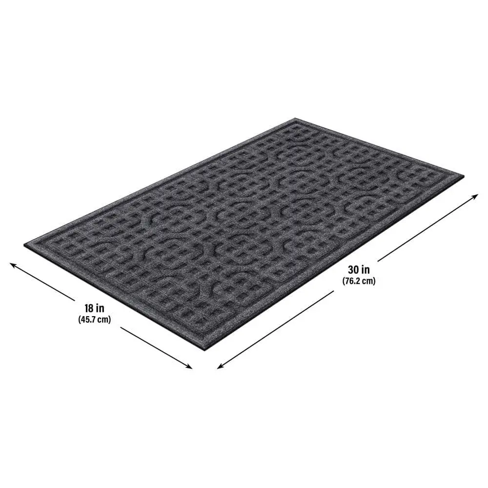 The TrafficMaster Gray Texture 18 in. x 30 in. Door Mat is designed for durability and functionality, making it a great addition to any entryway. Its textured surface effectively traps dirt and moisture, keeping floors clean. The neutral gray color blends seamlessly with various décors, while the non-slip backing ensures stability and safety. Built for both indoor and outdoor use, this weather-resistant mat withstands daily wear and tear. Easy to maintain, simply shake, sweep, or rinse to keep it looking fresh