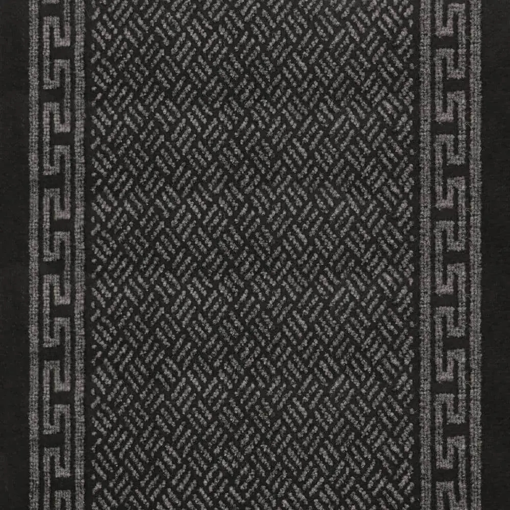 The TrafficMaster Greek Key Charcoal 2 ft. 2 in. x Your Choice Length Roll Runner features a stylish Greek Key pattern in charcoal, adding a modern and sophisticated touch to your space. Made with durable nylon, this runner is built to withstand high foot traffic while maintaining its look. The non-slip backing ensures it stays securely in place, making it ideal for hallways, entryways, or kitchens. It’s easy to maintain with simple vacuuming or spot cleaning, offering both durability and style for your home