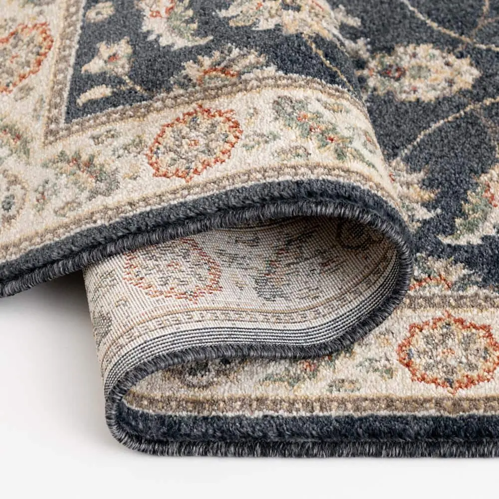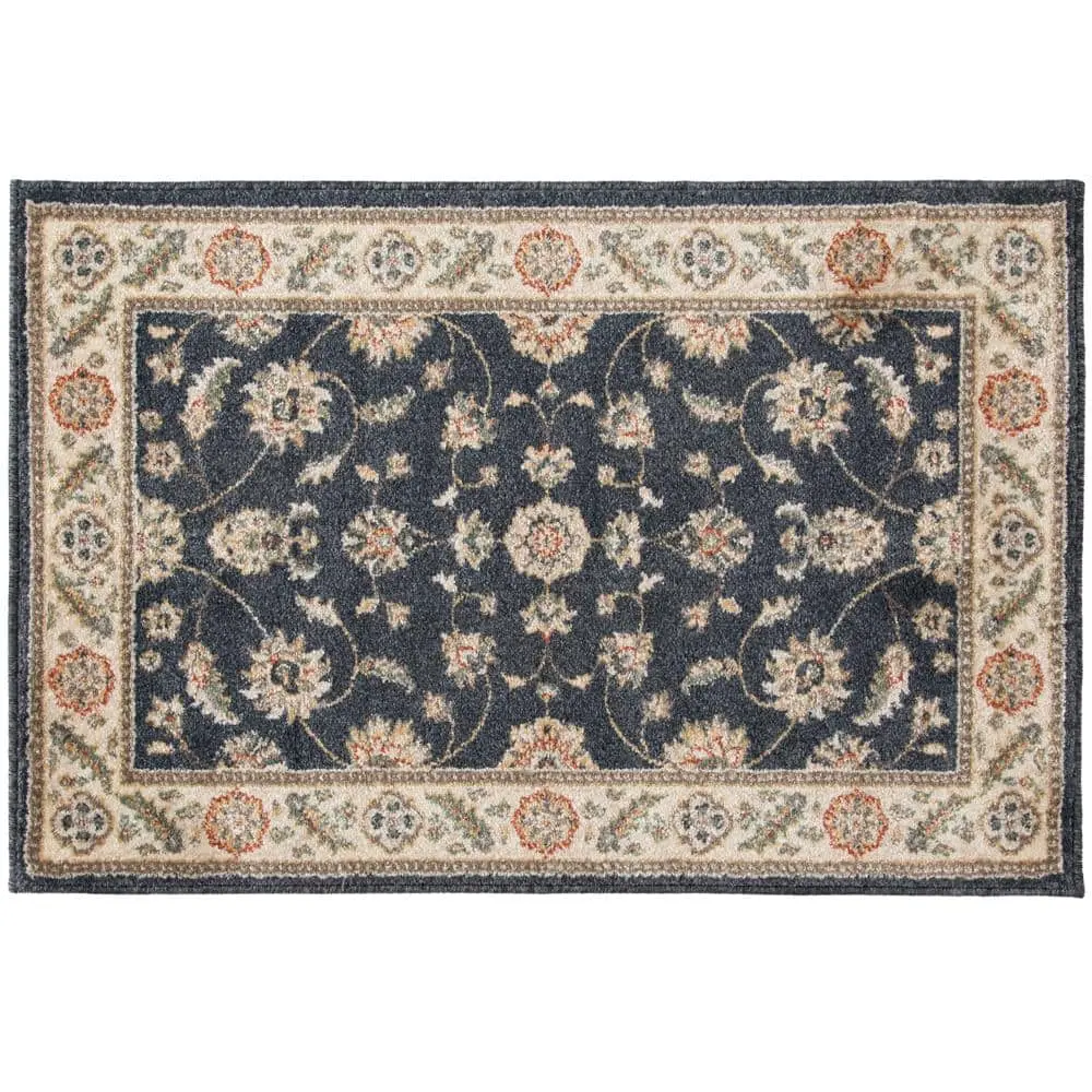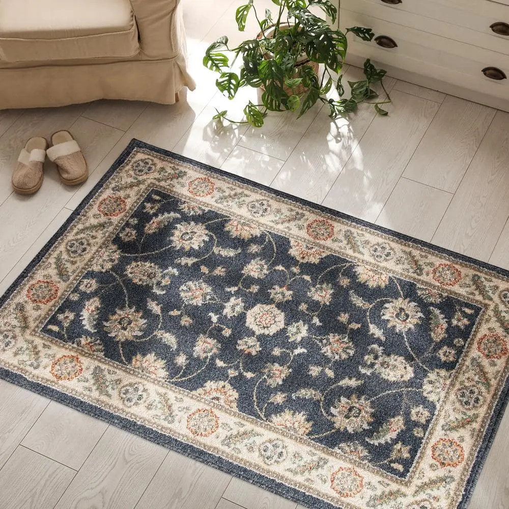The TrafficMaster Kazmir Navy Non-Slip Indoor Area Rug adds a touch of elegance and comfort to any space. Featuring a sophisticated Kazmir pattern in rich navy tones, it enhances the aesthetic appeal of your home. Designed for safety, its non-slip backing keeps the rug securely in place, preventing unwanted movement. Crafted from durable synthetic fibers, it ensures long-lasting performance while offering a soft and comfortable feel underfoot. Plus, with its stain-resistant and easy-to-clean design, maintaining its fresh look is effortless